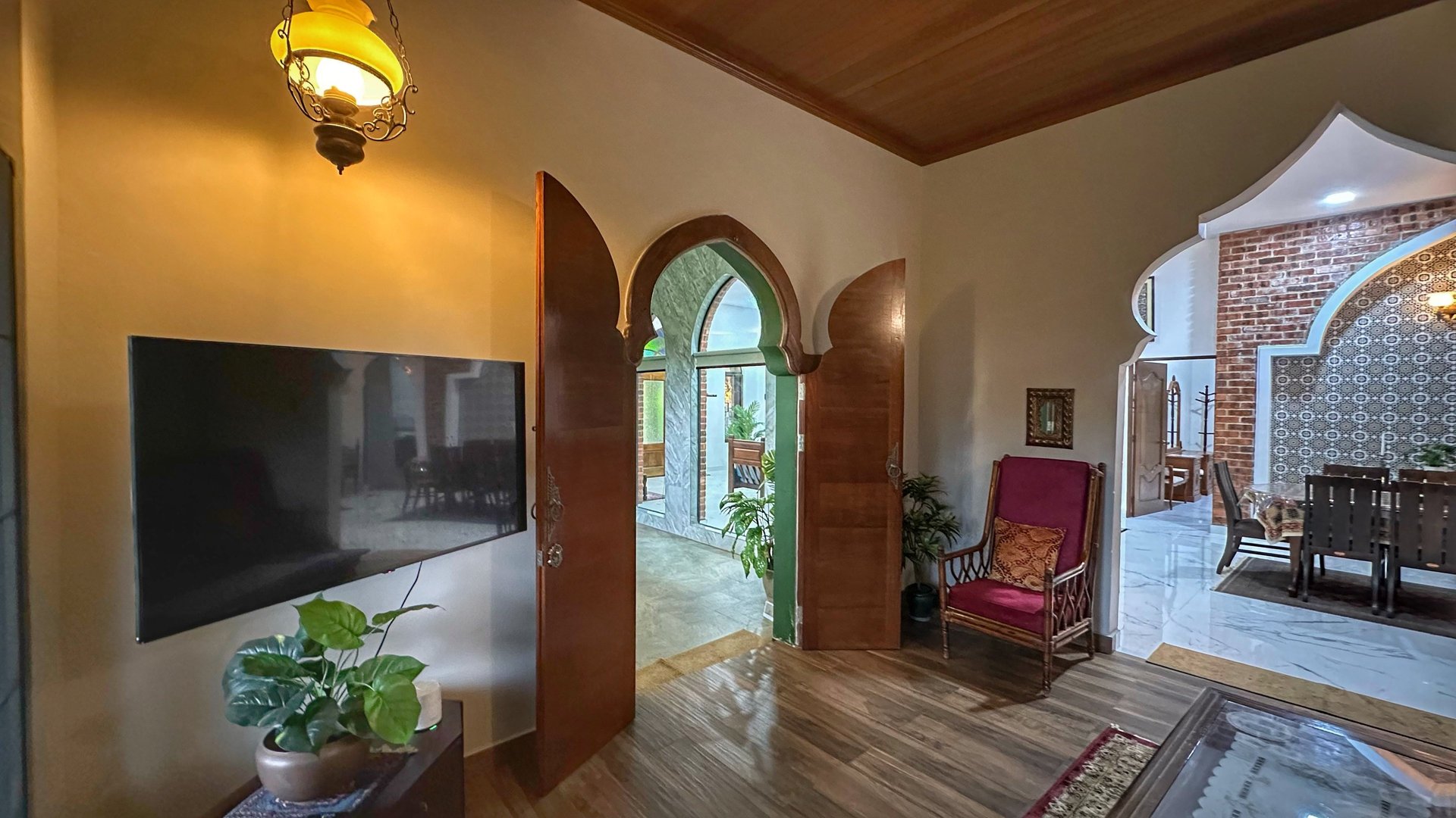 Family owned and operated, The Manzil is inspired and built in an eclectic Moorish style, reflected in the multitude of arches, decorative tile work, terracotta tiles and use of natural wood; lending earthy tones that enhance the coziness of the whole space. Reflecting traditional architectural norms, the villa at once creates an atmosphere of warmth and hospitality, as well as spaciousness and generosity. A clear hierarchy of form and clearly delineated spaces ensure ultimate privacy, while still infusing the space with the celebrated elements of Arabic culture.